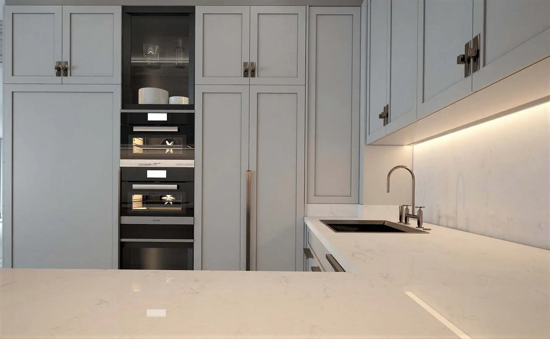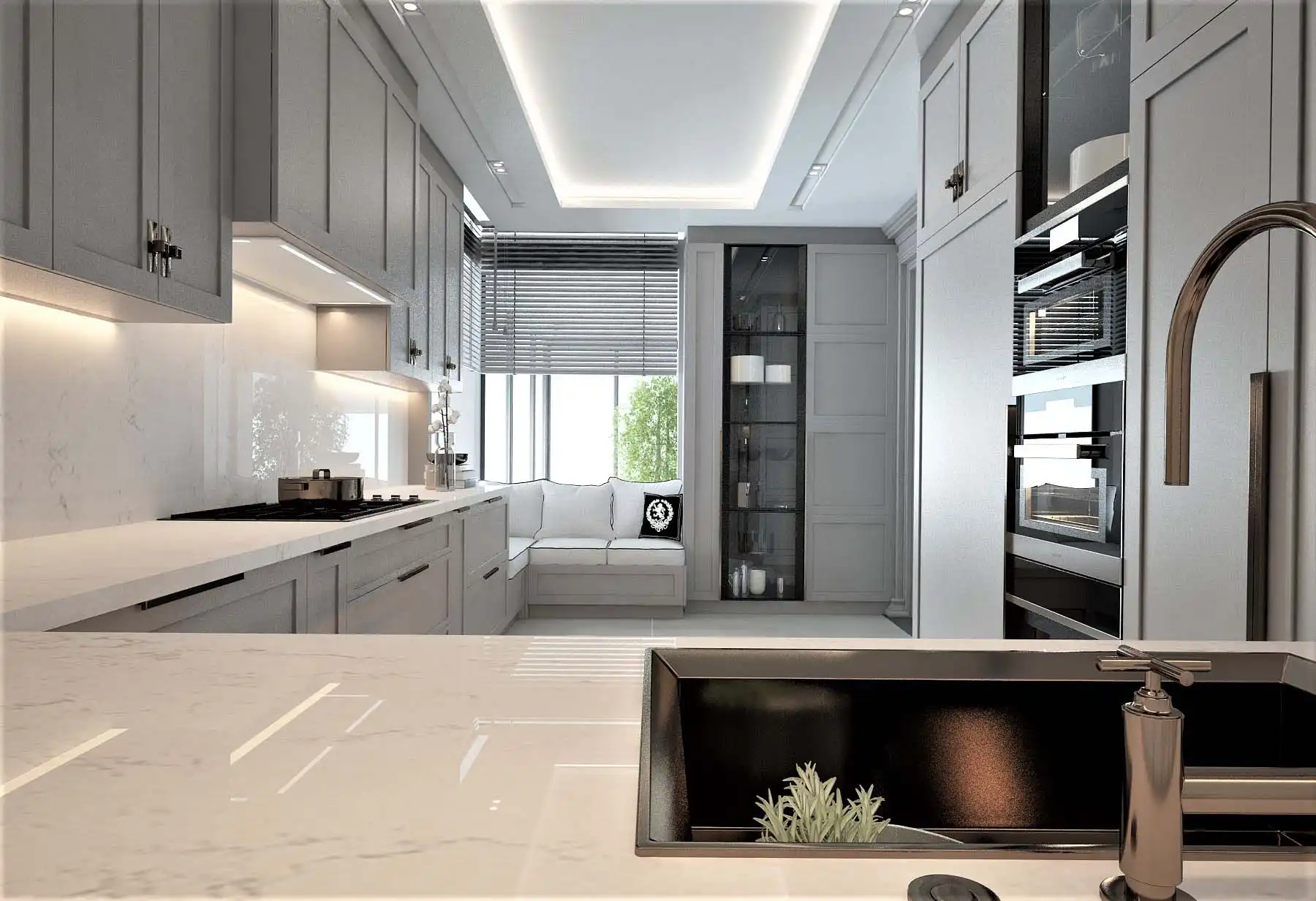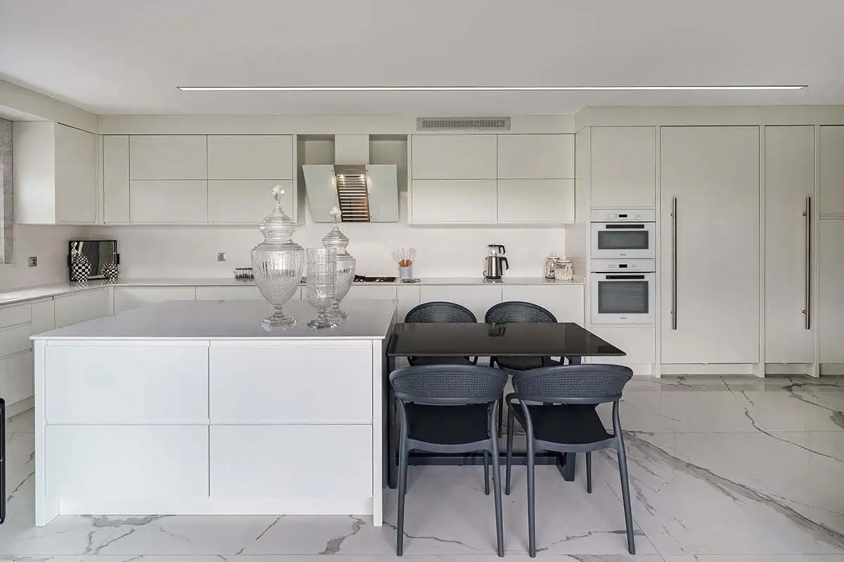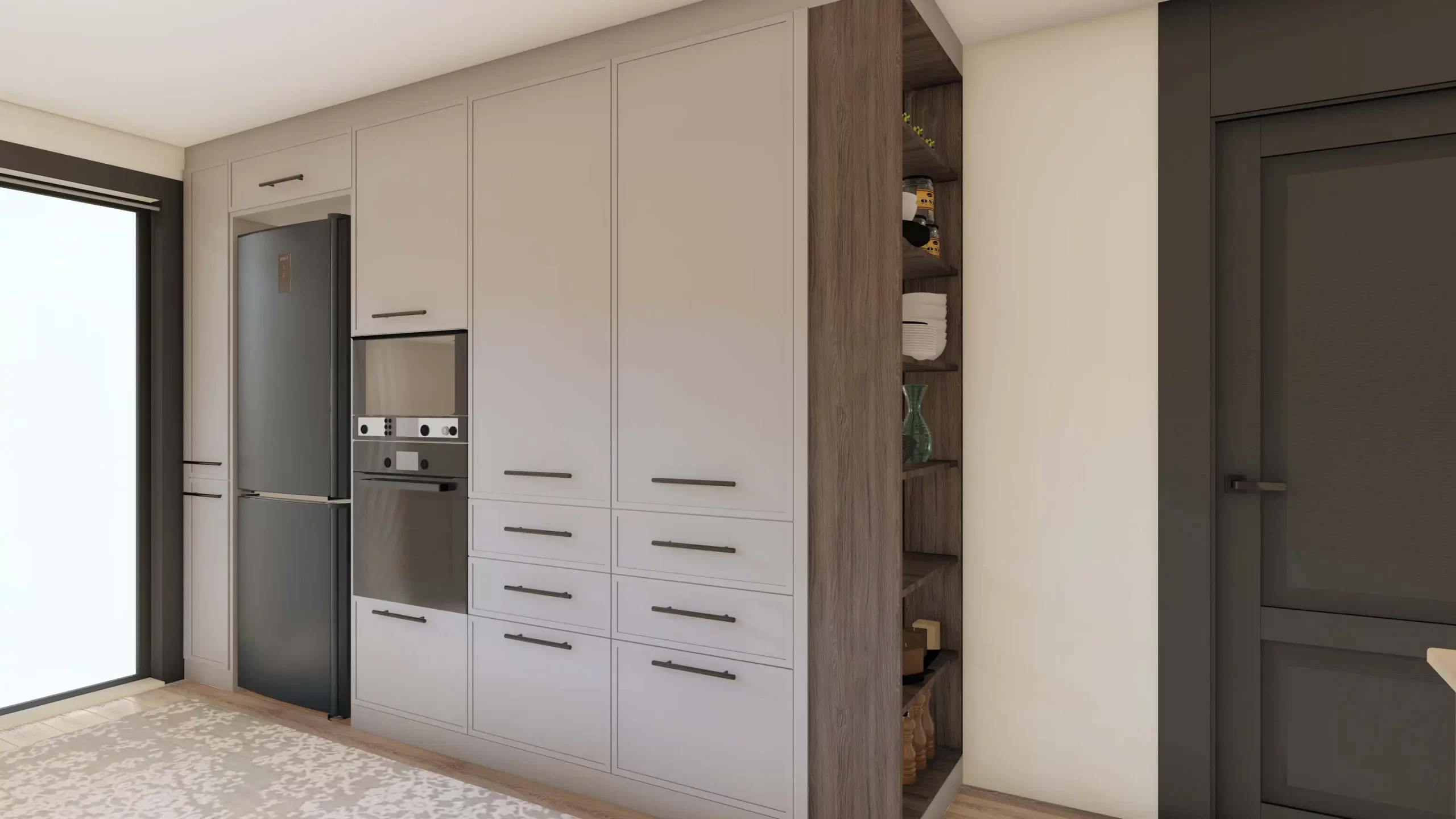 Bayuss Mobilya olarak, mutfaklarınızda estetik ve fonksiyonelliği bir araya getirdiğimiz projelerimizle fark yaratıyoruz. Son projelerimizden birinde, modern tasarım anlayışımızı, pratik depolama çözümleri ve zarif detaylarla birleştirerek, müşterimizin evine şık ve işlevsel bir mutfak alanı kazandırdık.